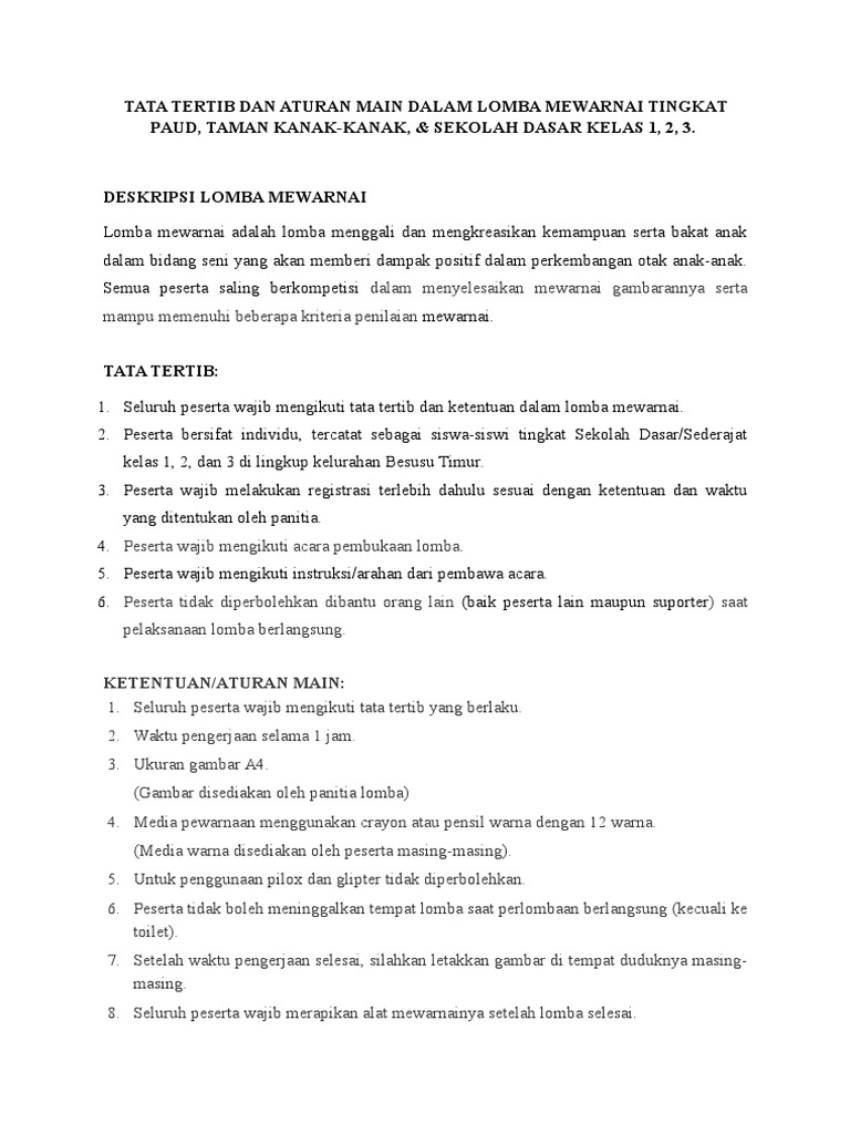 Tata Tertib Dan Aturan Main Dalam Lomba Mewarnai Tingkat Paud